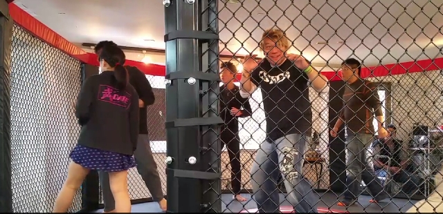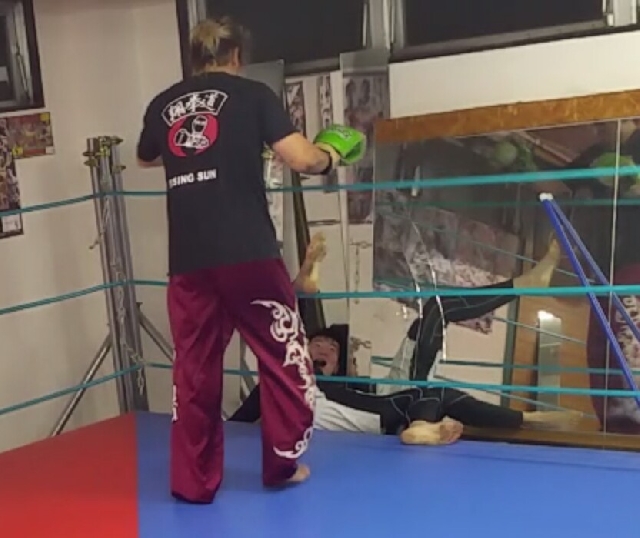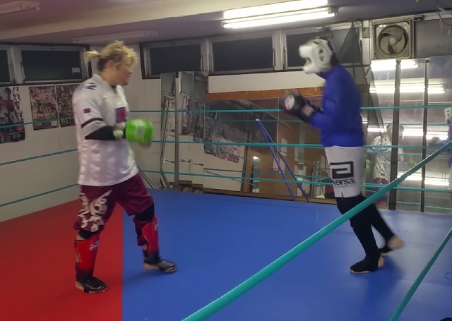 マンモス東選手は対戦相手がいない為、75kg級の選手とスパーリングになります。